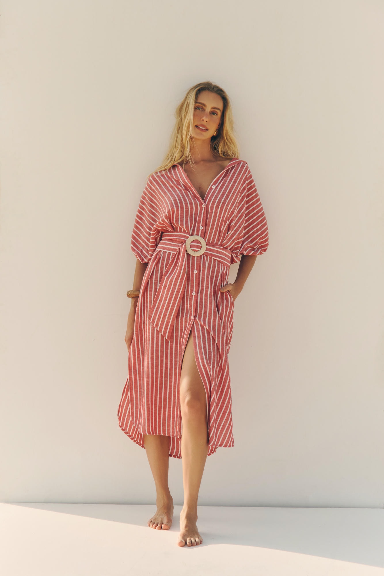 CHEMISE LONGO BORDADO LISTRA BUZIOS – VERMELHA