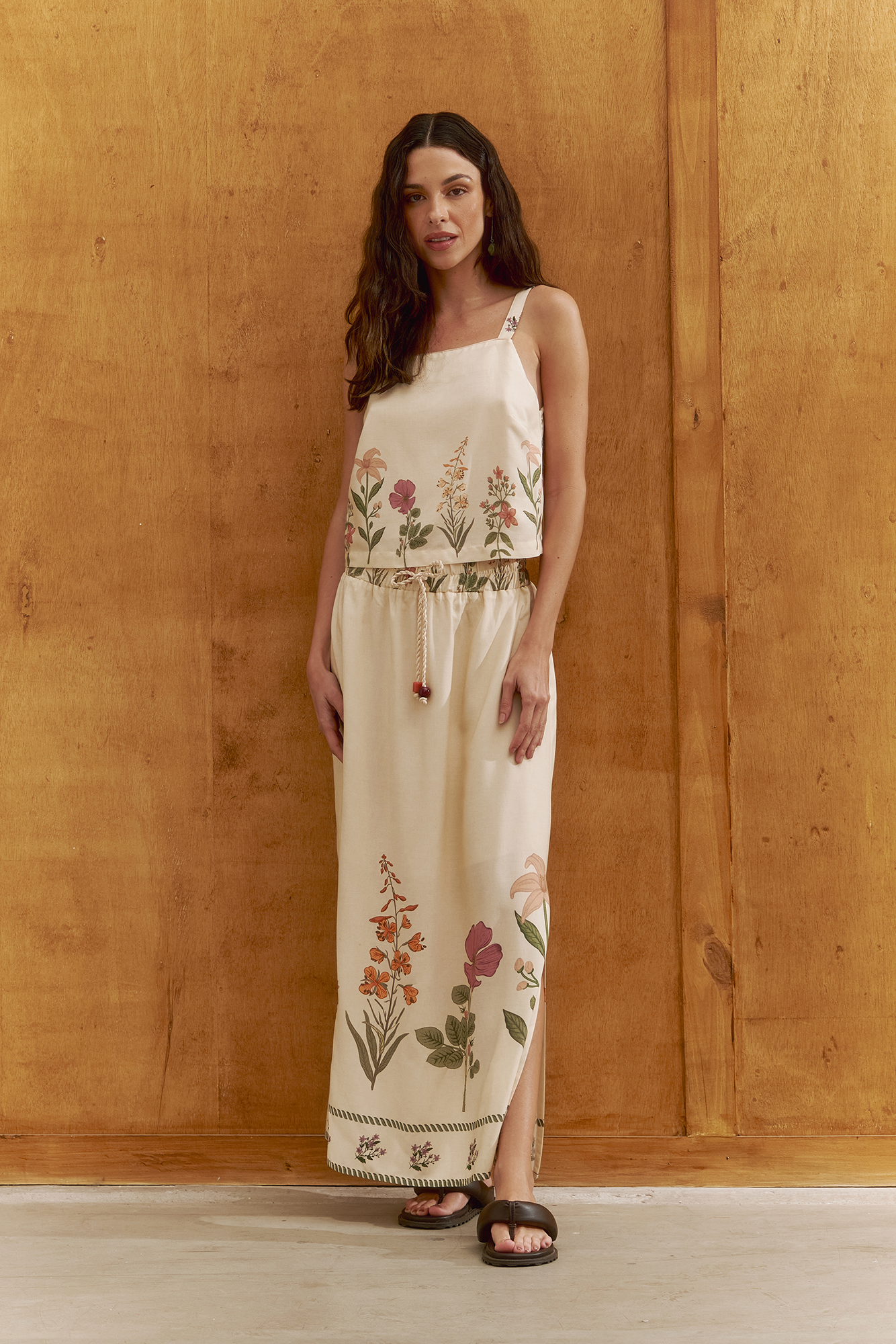 Saia com estampa exclusiva localizada e corte reto que valoriza a silhueta com caimento natural e toque fluido. A cintura com elástico garante ajuste confortável e prático. Ideal para compor looks coordenados com a blusa da mesma estampa, ou para contrastar com peças neutras em produções versáteis e cheias de estilo.