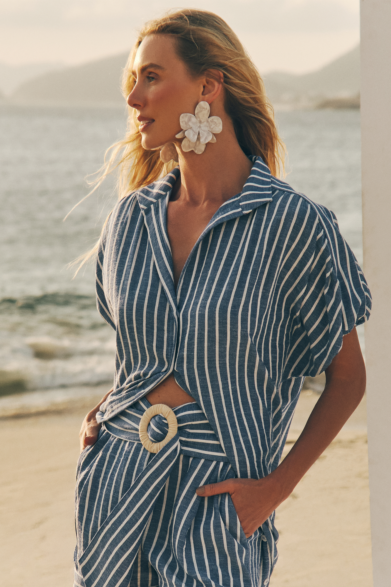 Short com pregas frontais, zíper lateral e elástico nas costas, garantindo conforto e melhor ajuste ao corpo. Uma peça prática e despojada, ideal para composições leves e versáteis. Comprimento lateral tamanho P – 40 cm.