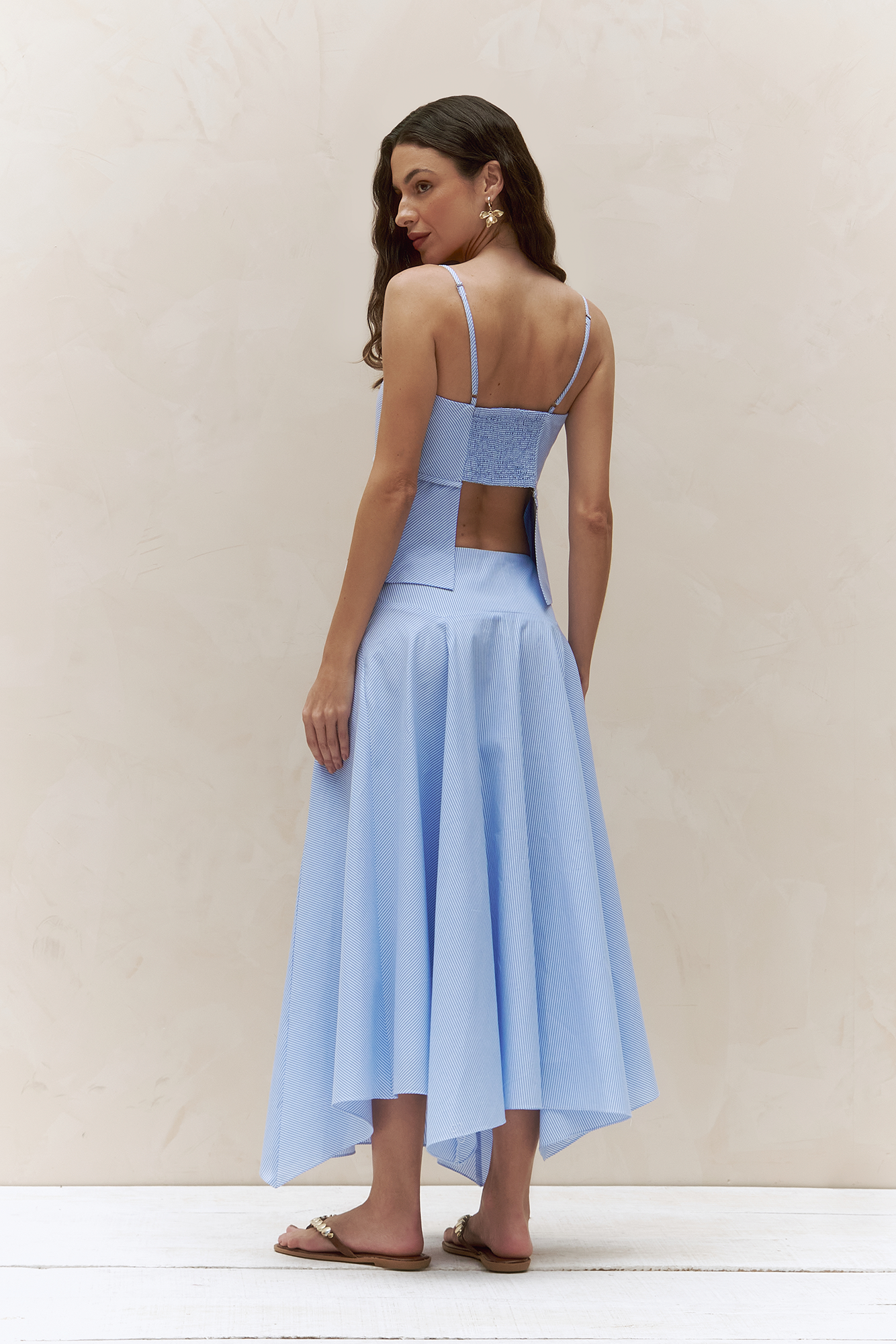Top em algodão listrado, com costas nuas que trazem frescor e charme ao look. O lastex nas costas garante ajuste confortável, enquanto o recorte diferenciado no busto valoriza a peça com um toque moderno e feminino.