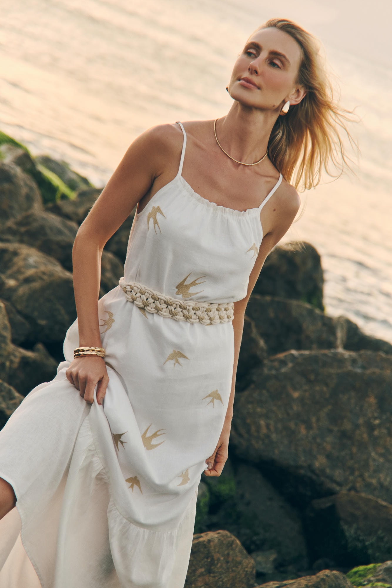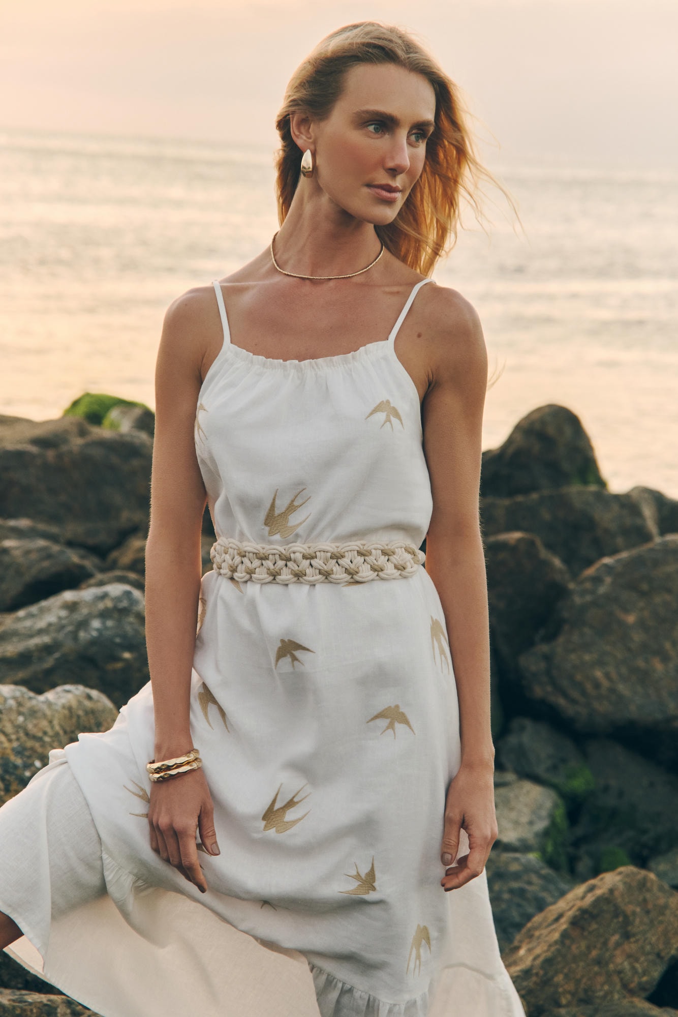 Vestido midi de modelagem solta, com caimento leve e fluido que garante conforto e elegância. O bordado delicado de andorinhas adiciona um toque original e poético à peça. Possui alças reguláveis. Versátil e atemporal é ideal para compor looks frescos e sofisticados do dia a dia a ocasiões especiais. Comprimento total aproximadamente 1,25cm.