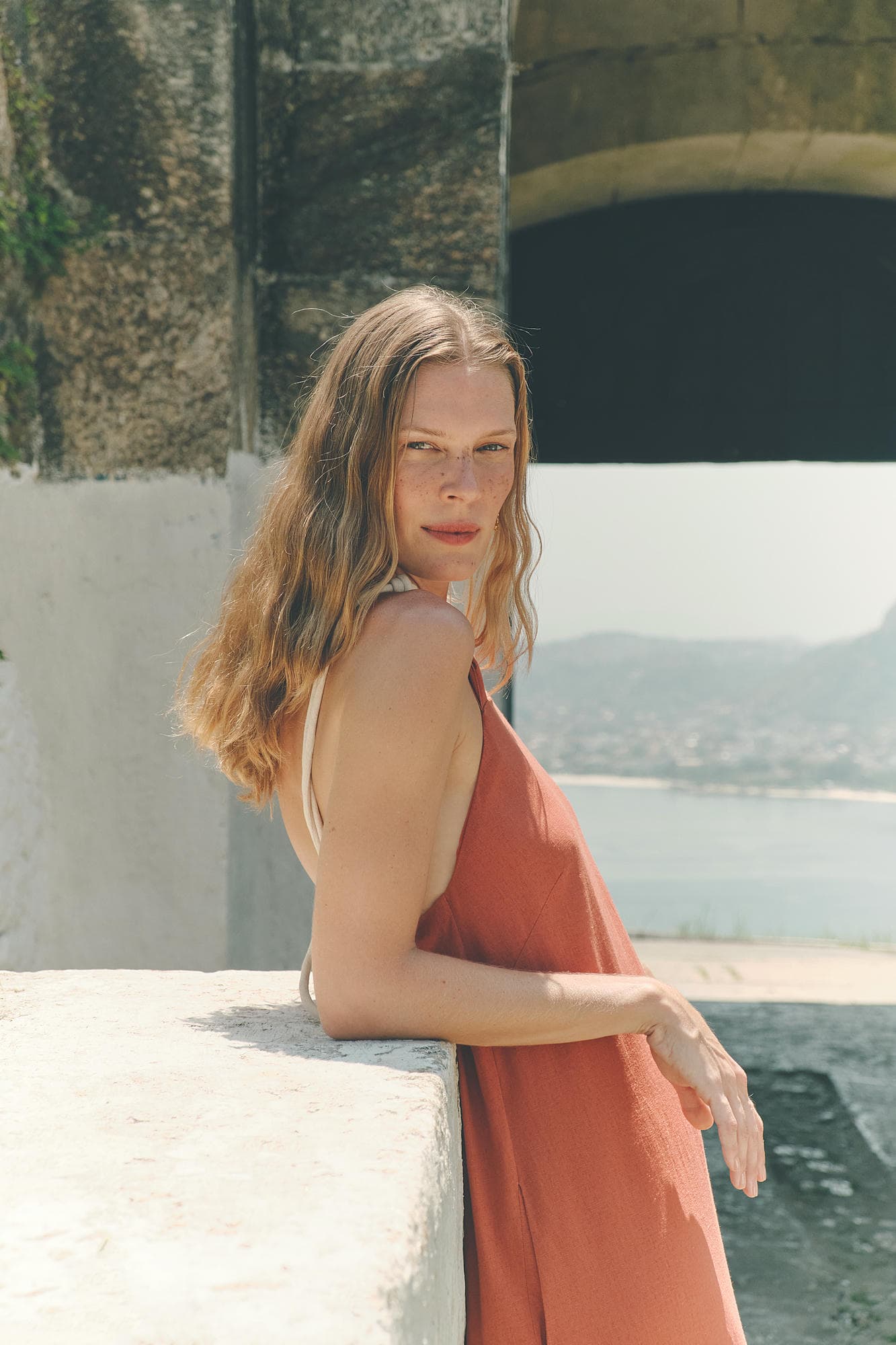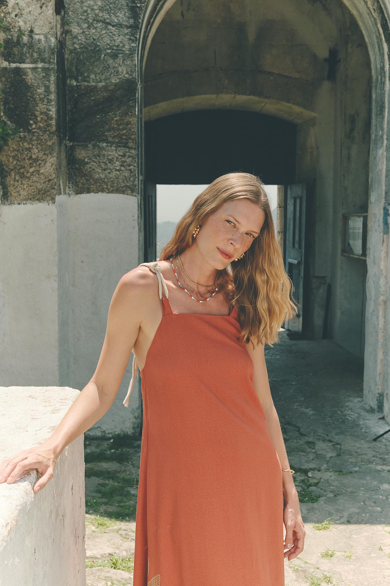 VESTIDO LONGO BORDADO ALÇA NÓ – TERRACOTA