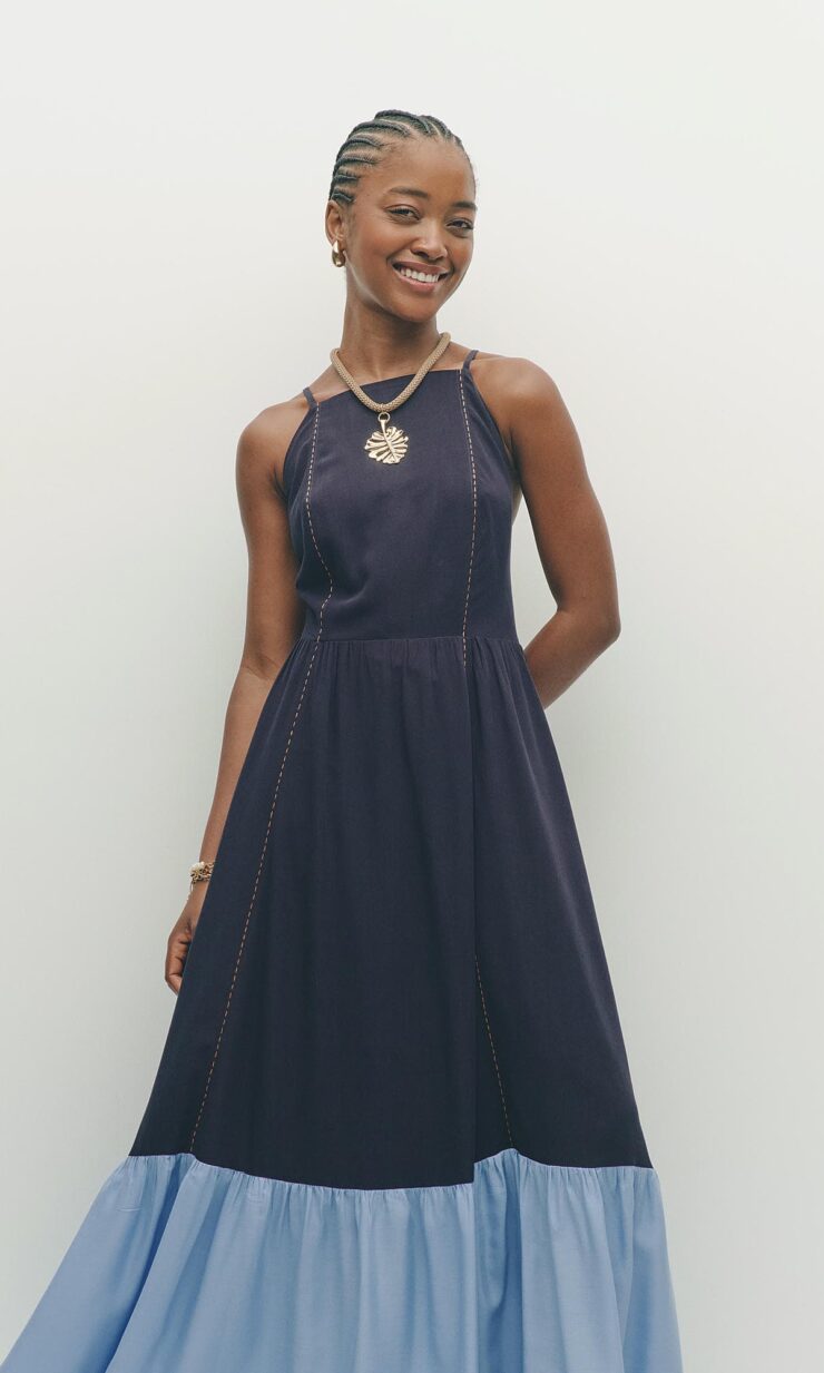 Vestido em linho leve, perfeito para dias quentes. Com alças recheadas ajustáveis, garantindo um toque sofisticado e artesanal. Possui modelagem ampla que proporciona conforto e elegância. Os detalhes bordados florais estrategicamente localizados dão charme e um toque de delicadeza, criando um visual fresco e natural. Ideal para momentos descontraídos ou ocasiões ao ar livre.