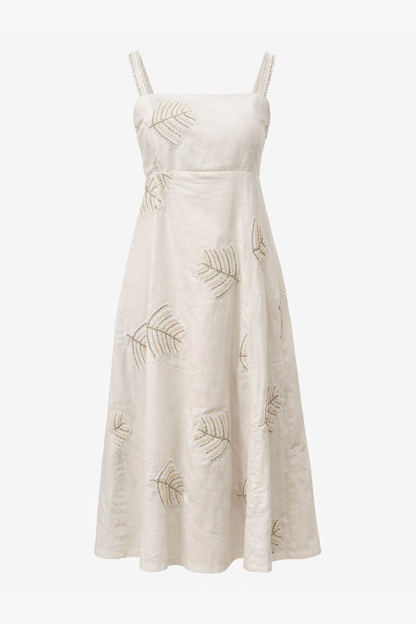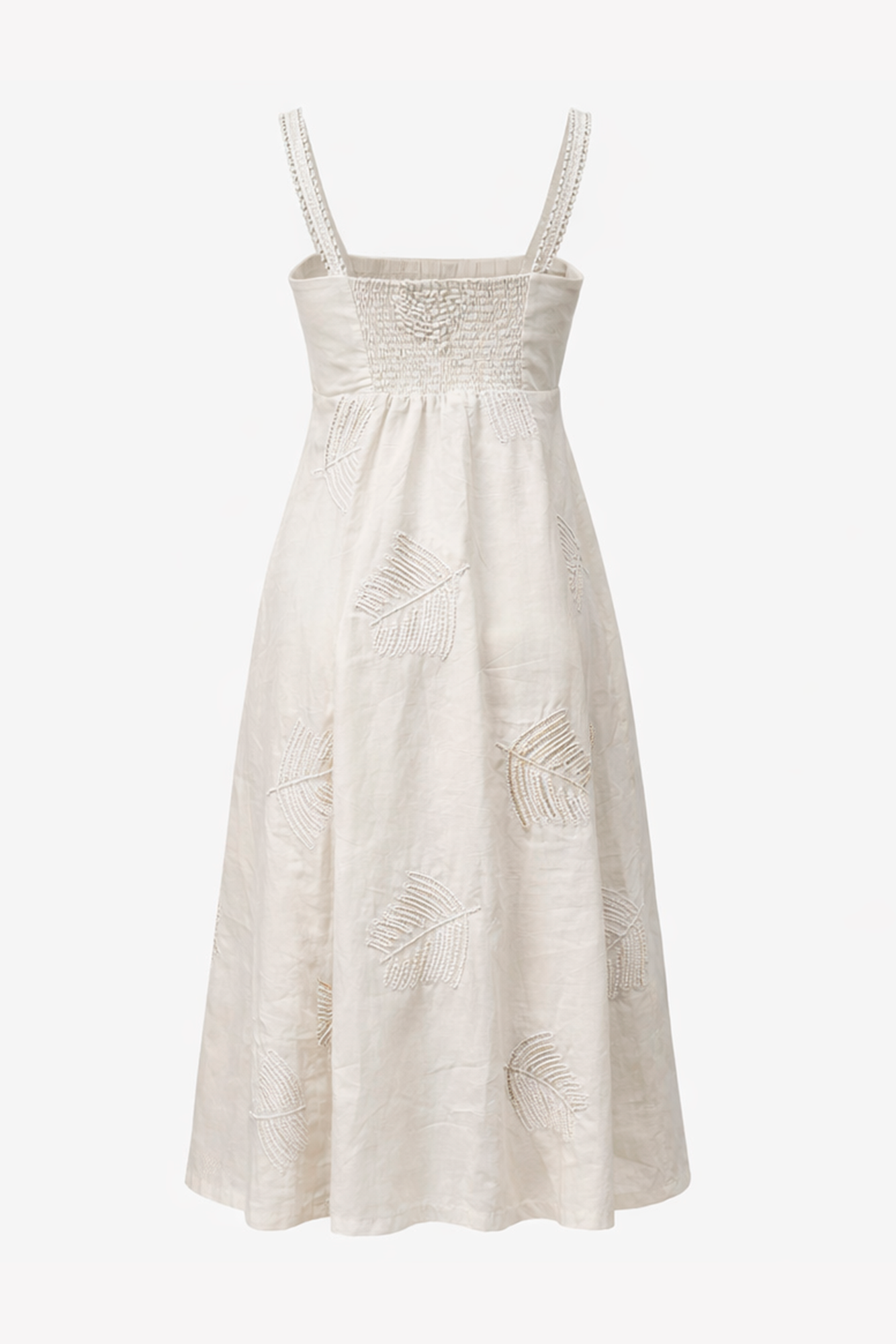 VESTIDO MIDI BORDADO FOLHAS – FOG